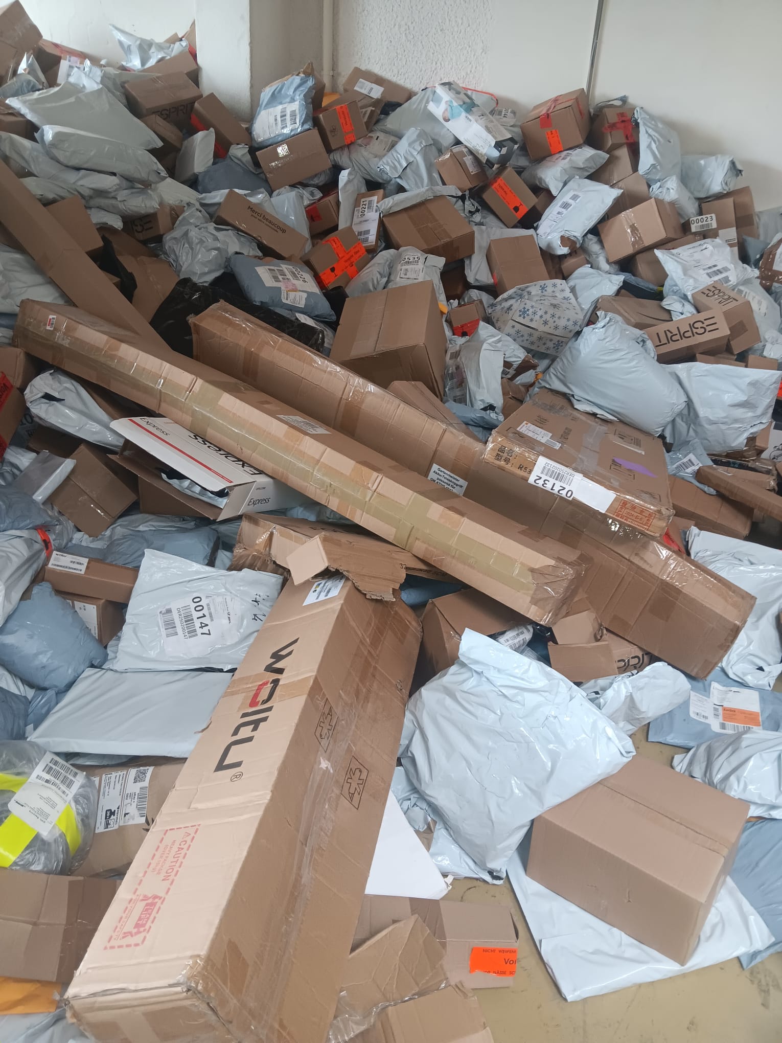 Bei den Paketen handelt es sich um nicht zustellbare, beim Zoll liegen geblieben, nicht abgeholt beim Versanddienstleister, Rückläufer vom Onlinehandel.